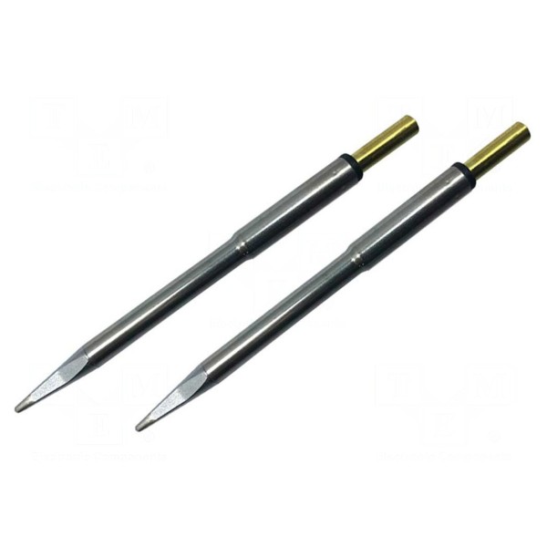 Grot tnący z wbudowaną grzałką przeznaczony jest do pracy z gorącymi szczypcami. Element charakteryzuje się wymiarem końcówki wynoszącym 1,3 mm oraz temperaturą roboczą osiągającą 413°C.