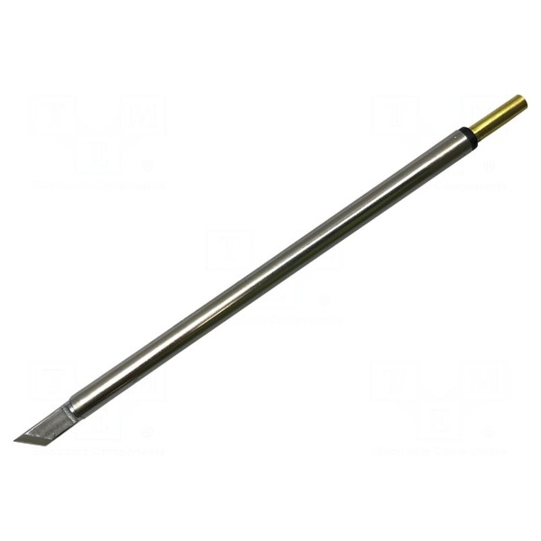 Grot z wbudowaną grzałką o kształcie noża przeznaczony jest do wykorzystania w stacjach lutowniczych. Element charakteryzuje się szerokością końcówki wynoszącą 5 mm.