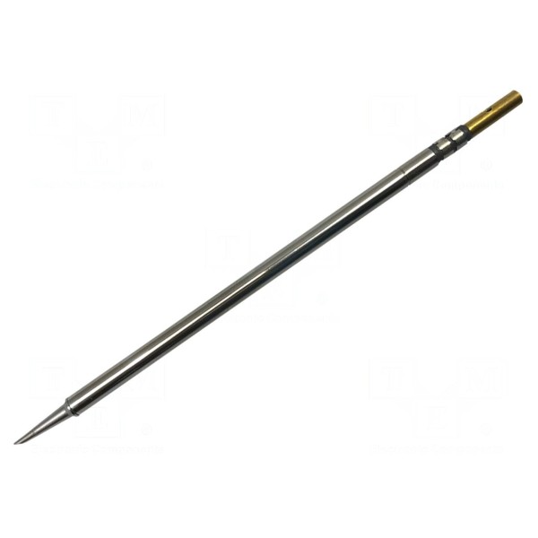 Grot z wbudowaną grzałką o kształcie kopytka jest przeznaczony do pracy ze stacjami lutowniczymi. Element charakteryzuje się wymiarami końcówki wynoszącymi 1,5x1,76 mm oraz stałą temperaturą pracy na poziomie 413°C.