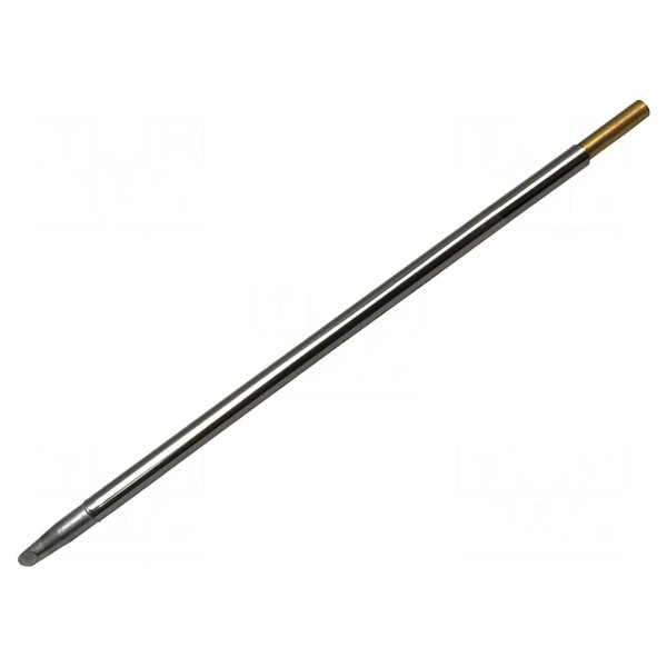 Grot lutowniczy typu kopytko o szerokości 3,3 mm przeznaczony jest do współpracy ze stacjami lutowniczymi wykorzystującymi technologię SmartHeat. Element został wyposażony w zintegrowaną grzałkę, co zapewnia stabilną temperaturę pracy wynoszącą 357°C.