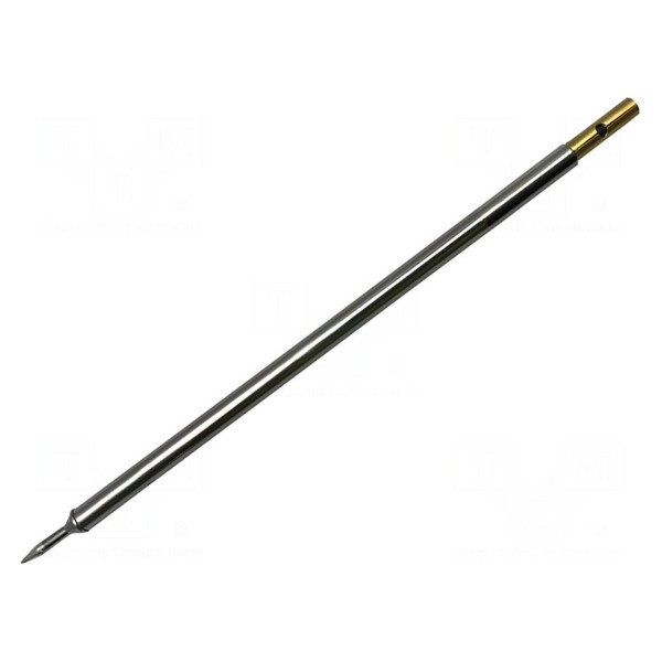 Grot lutowniczy zintegrowany z grzałką został zaprojektowany do prac wymagających precyzji w elektronice. Kształt stożka wydłużonego o średnicy 0,4 mm umożliwia dokładną aplikację spoiwa na elementach o małych wymiarach. Grot pracuje ze stałą temperaturą wynoszącą 357°C.
