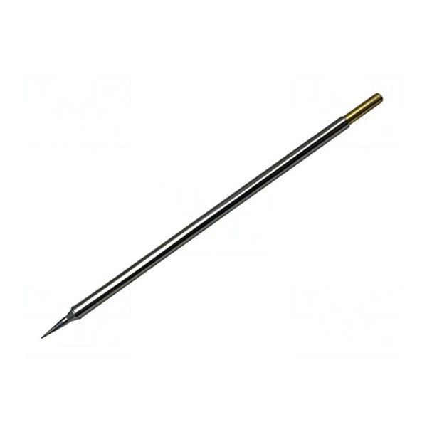 Grot lutowniczy z wbudowaną grzałką posiada wydłużony kształt stożka o średnicy końcówki 0,4 mm. Komponent pracuje w oparciu o technologię SmartHeat, utrzymując stałą temperaturę roboczą na poziomie 357°C.