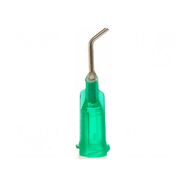 Igła dozująca wykonana ze stali przeznaczona do pracy z dozownikami. Element posiada rozmiar 18 i długość 1,5 cala, a jego konstrukcja obejmuje zagięcie pod kątem 45° ułatwiające precyzyjną aplikację substancji.