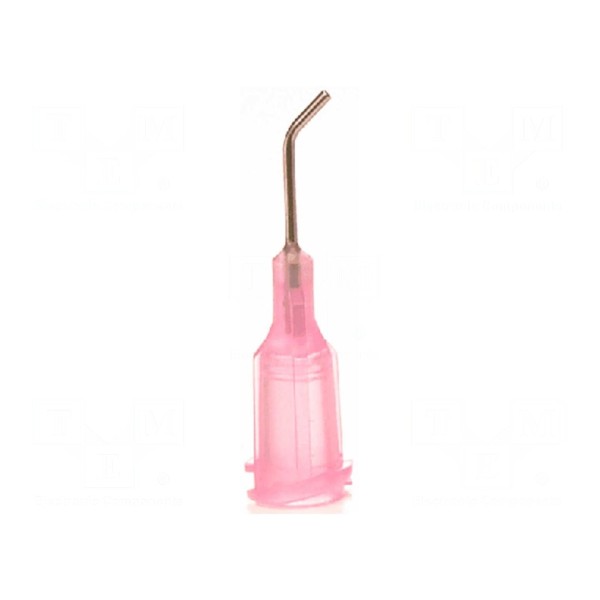 Igła dozująca wykonana ze stali posiada zagięty pod kątem 45° kształt, co ułatwia precyzyjną aplikację substancji. Element charakteryzuje się rozmiarem 20 oraz długością wynoszącą 0,5 cala.