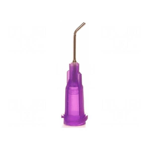Igła stalowa przeznaczona do użytku z dozownikami płynów. Element posiada zagięty pod kątem 45° kształt, co ułatwia precyzyjną aplikację substancji w miejscach o ograniczonej dostępności.
