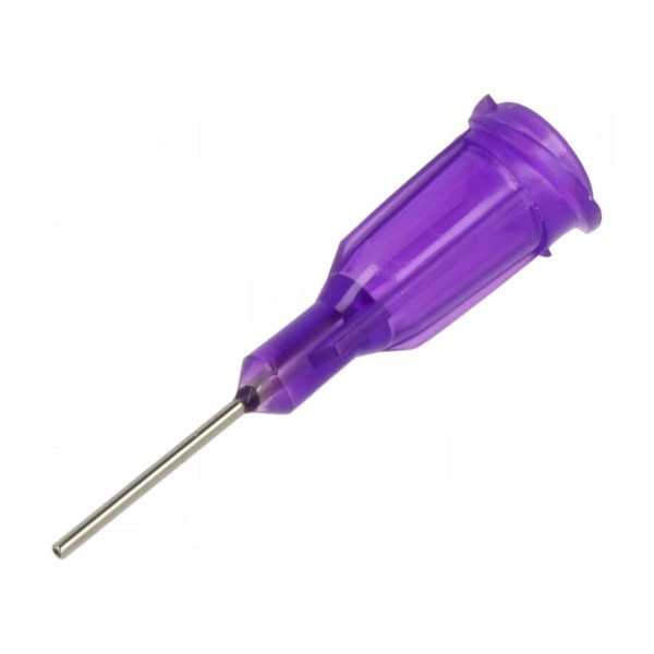 Prosta igła dozująca o długości 0,5 cala i rozmiarze 21 przeznaczona jest do współpracy z dozownikami. Element został wykonany ze stali, natomiast korpus wyprodukowano z polipropylenu w kolorze fioletowym.