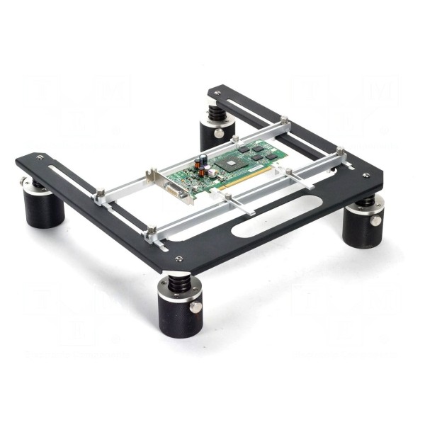 Konstrukcja uchwytu dostosowana jest do obsługi płytek o wymiarach do 203x305mm. Urządzenie stanowi akcesorium pomocnicze do sprzętu lutowniczego i nie zawiera w zestawie płytki PCB.