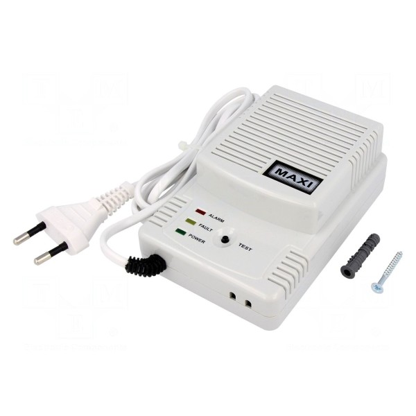 Wykrywacz tlenku węgla (czadu) przeznaczony jest do ciągłego monitorowania stężenia gazu w pomieszczeniach. Urządzenie charakteryzuje się poborem mocy na poziomie 3W i jest zasilane napięciem 230V AC. Zakres temperatury pracy przyrządu mieści się w przedziale od -10°C do 40°C.