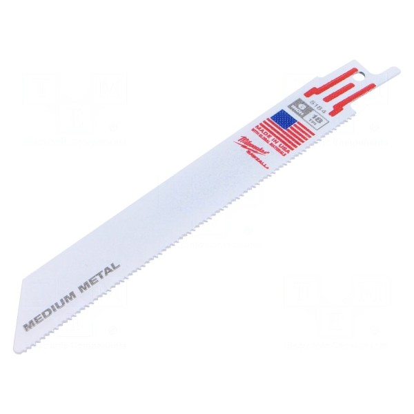 Brzeszczot przeznaczony do cięcia metalu za pomocą pił szablastych wykonany jest z materiału typu bimetal. Charakteryzuje się podziałką 18 zębów na cal, co umożliwia sprawne prowadzenie prac tnących w metalowych elementach.