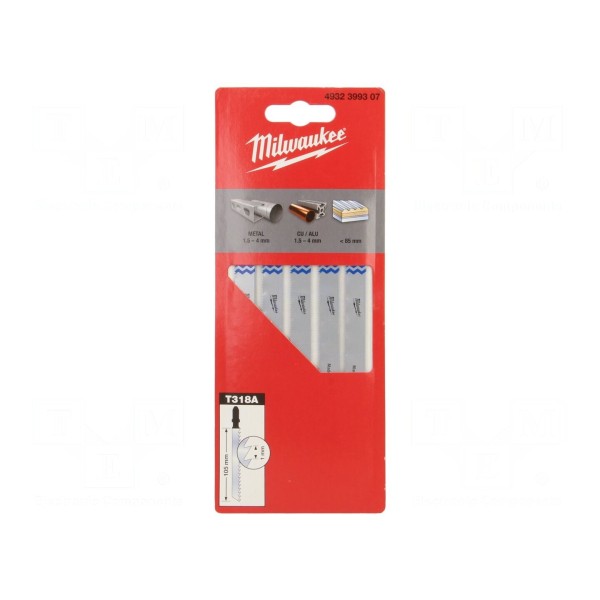 Zestaw zawiera brzeszczoty przeznaczone do cięcia metalu o długości 105 mm. Narzędzia wyposażone są w standardowy uchwyt typu T, co umożliwia montaż w większości dostępnych wyrzynarek.