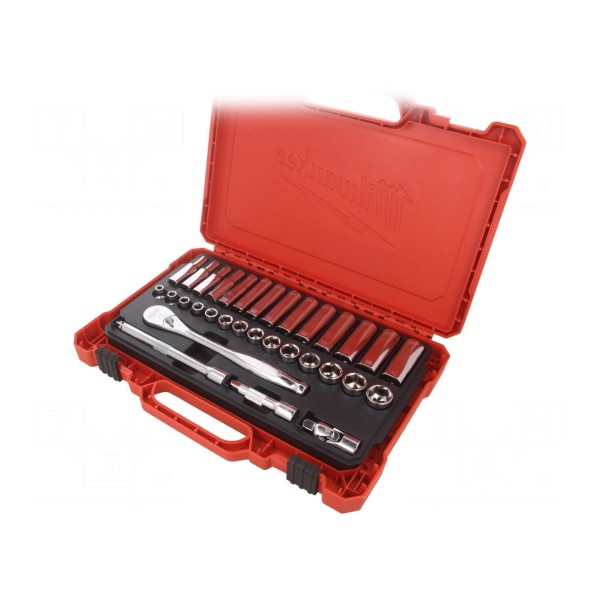 Zestaw kluczy nasadowych 6-kątnych 3/8", 32 elementy