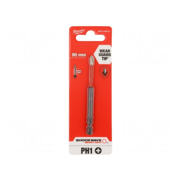 Końcówka wkrętakowa typu Phillips o rozmiarze PH1 została przeznaczona do zastosowań udarowych. Produkt charakteryzuje się całkowitą długością wynoszącą 90 mm.