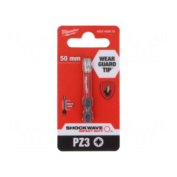 Końcówka wkrętakowa udarowa typu Pozidriv o rozmiarze PZ3 została zaprojektowana do współpracy z elektronarzędziami. Akcesorium posiada całkowitą długość 50mm.