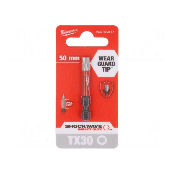 Końcówka wkrętakowa udarowa została zaprojektowana do pracy z wkrętami typu Torx o rozmiarze TX30. Element o całkowitej długości 50mm jest przystosowany do zastosowań wymagających odporności na obciążenia udarowe.