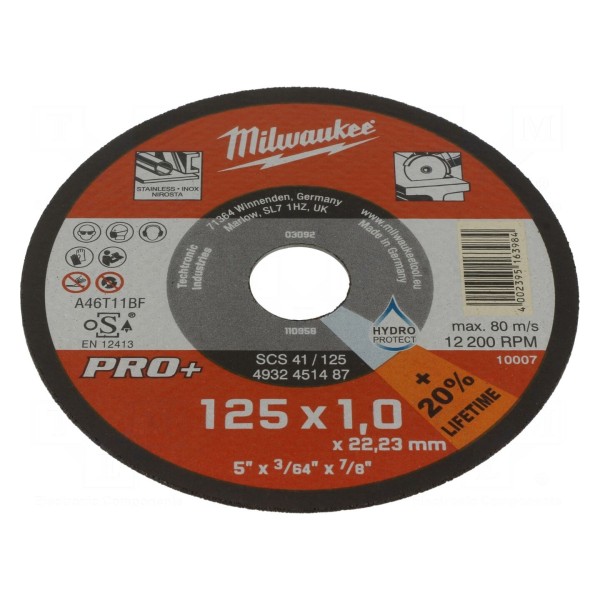 Tarcza tnąca przeznaczona jest do współpracy z elektronarzędziami wyposażonymi w odpowiedni system mocowania. Średnica zewnętrzna tarczy wynosi 125mm, przy grubości roboczej wynoszącej 1mm.