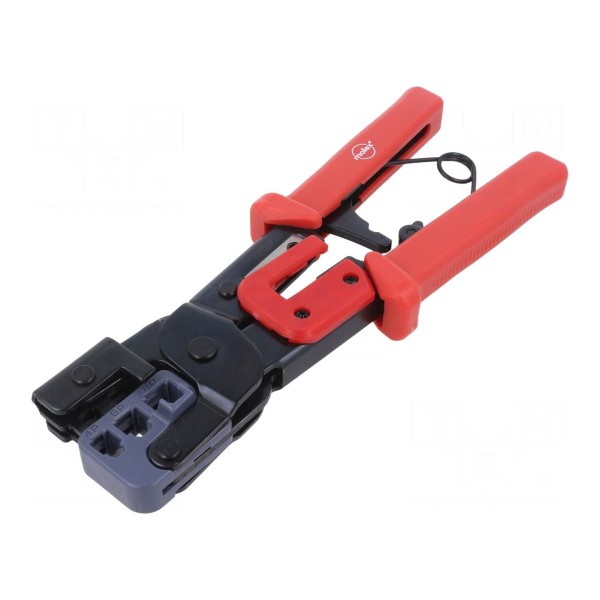 Narzędzie przeznaczone jest do zaciskania złączy modularnych typu RJ11 (6p), RJ22 (4p2c) oraz złączy RJ45. Jest przystosowane do pracy ze złączami nieekranowanymi.