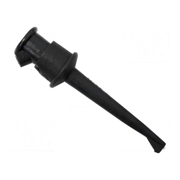 Chwytak pomiarowy typu haczykowego przeznaczony jest do wykonywania połączeń w układach elektronicznych. Urządzenie charakteryzuje się prądem znamionowym 5A oraz dopuszczalnym napięciem roboczym 0,3kV.