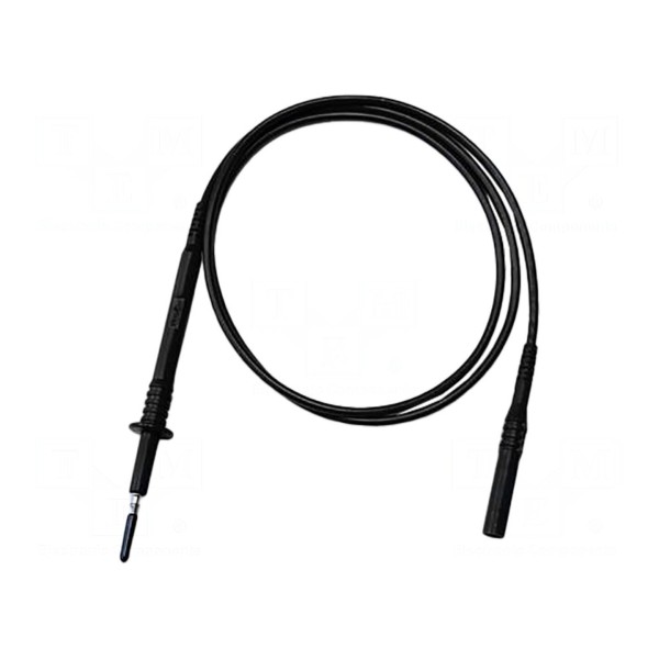 Przewód pomiarowy o długości 1 m wyposażony jest w końcówkę pomiarową z gwintem oraz wtyk bananowy 4 mm. Produkt przeznaczony jest do pracy przy prądzie znamionowym wynoszącym 20 A oraz napięciu znamionowym 1 kV.