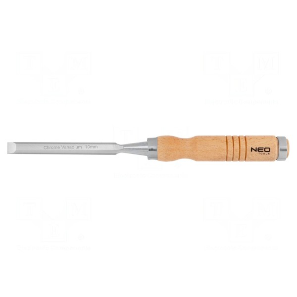 Narzędzie przeznaczone jest do obróbki drewna. Szerokość końcówki roboczej wynosi 10 mm, co pozwala na precyzyjne wycinanie oraz dłutowanie materiału.