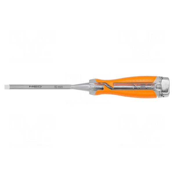 Dłuto marki NEO TOOLS jest przeznaczone do obróbki drewna. Szerokość końcówki roboczej wynosi 10 mm, natomiast całkowita długość narzędzia to 260 mm.