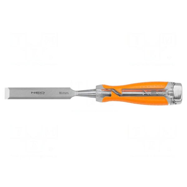 Narzędzie przeznaczone jest do obróbki drewna. Szerokość końcówki dłuta wynosi 16mm, a całkowita długość narzędzia to 260mm.