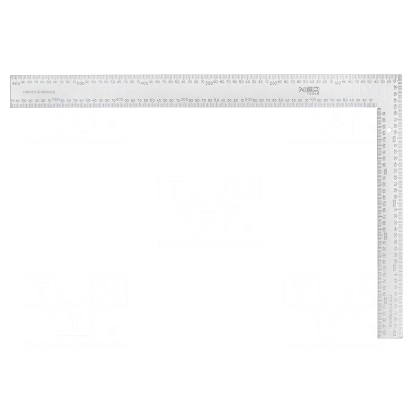 Kątownik NEO TOOLS 72-130 to narzędzie o wymiarach ramion 0,6m oraz 0,4m. Konstrukcja wykonana jest z aluminium, co zapewnia odpowiednią sztywność podczas prac traserskich i pomiarowych.