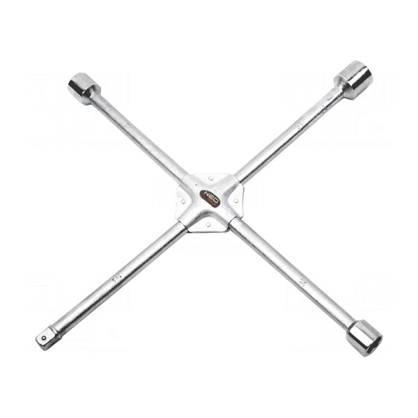 Narzędzie typu klucz do kół przeznaczone jest do obsługi śrub montażowych pojazdów. Konstrukcja pozwala na stosowanie wymiennych końcówek w trzech rozmiarach: 17mm, 19mm oraz 22mm.