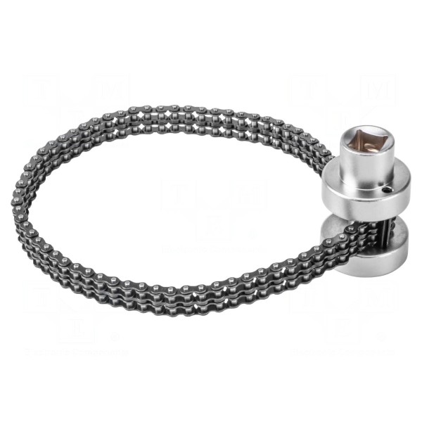 Narzędzie przeznaczone do obsługi filtrów olejowych o średnicy w zakresie od 60 do 115 mm. Konstrukcja pozwala na stabilny chwyt filtra, co umożliwia jego odkręcenie lub dokręcenie podczas prac serwisowych przy układach smarowania silników spalinowych.