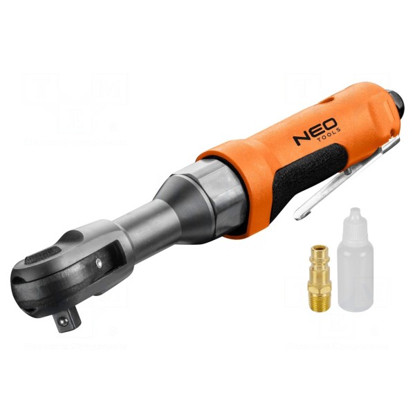 Konstrukcja kątowa pozwala na dostęp do elementów złącznych umieszczonych w trudno dostępnych miejscach. Narzędzie wykorzystuje zasilanie pneumatyczne, co determinuje jego zastosowanie w warsztatach wyposażonych w instalacje sprężonego powietrza.