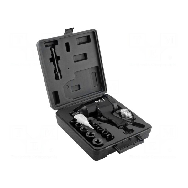 Klucz pneumatyczny NEO TOOLS przeznaczony jest do prac warsztatowych wymagających operowania elementami złącznymi. Narzędzie wyposażone jest w gniazdo typu kwadrat o rozmiarze 1/2".
