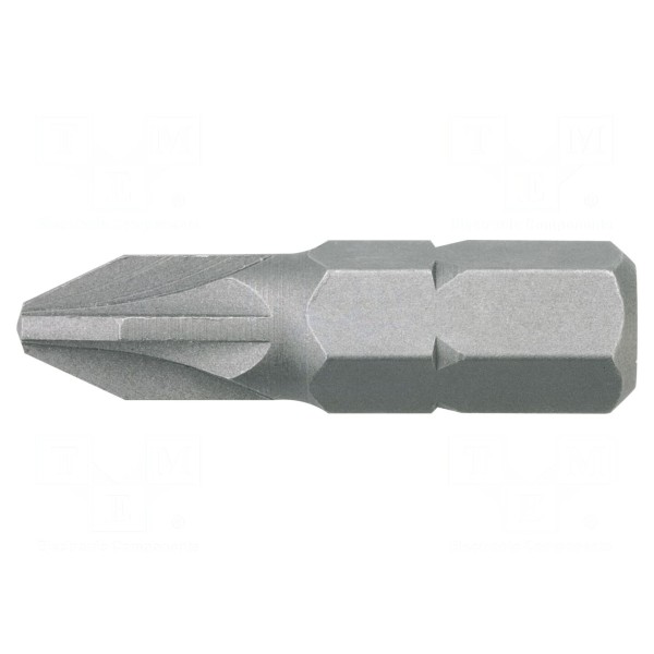 Końcówka wkrętakowa typu Pozidriv o rozmiarze PZ2 została zaprojektowana do prac montażowych. Produkt charakteryzuje się długością całkowitą wynoszącą 25 mm oraz uchwytem o rozmiarze 1/4" (C6,3 mm), co umożliwia współpracę z większością standardowych uchwytów narzędziowych.