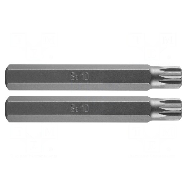 Końcówka wkrętakowa typu spline 12-kątnego posiada profil XZN w rozmiarze M10. Narzędzie zostało zaprojektowane do współpracy z uchwytami o rozmiarze gniazda 3/8".