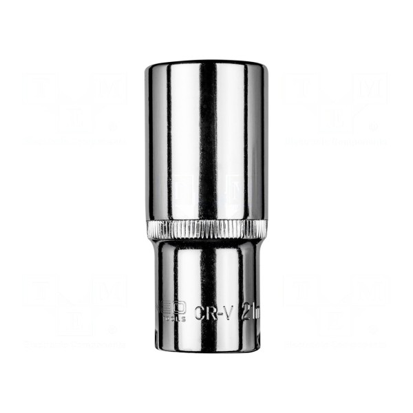 Nasadka sześciokątna typu nasadowego o rozmiarze 21 mm przeznaczona jest do współpracy z narzędziami wyposażonymi w uchwyt o rozmiarze 3/8". Element charakteryzuje się wydłużoną konstrukcją, osiągającą długość całkowitą 63 mm, co umożliwia pracę w miejscach o utrudnionym dostępie.
