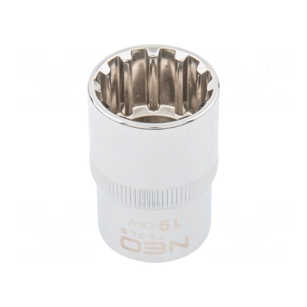 Nasadka spline 12-kątna o rozmiarze gniazda 19 mm przeznaczona jest do współpracy z kluczami o rozmiarze uchwytu 1/2". Element ten charakteryzuje się długością wynoszącą 38 mm.