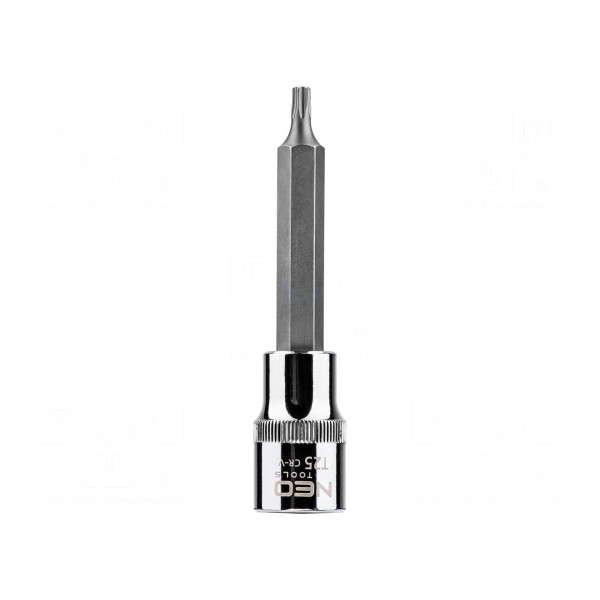 Nasadka narzędziowa typu Torx o rozmiarze TX25 przeznaczona jest do współpracy z kluczami posiadającymi gniazdo mocujące 1/2". Element charakteryzuje się całkowitą długością wynoszącą 100mm, co umożliwia dostęp do śrub w miejscach o utrudnionej widoczności lub głębszym osadzeniu.