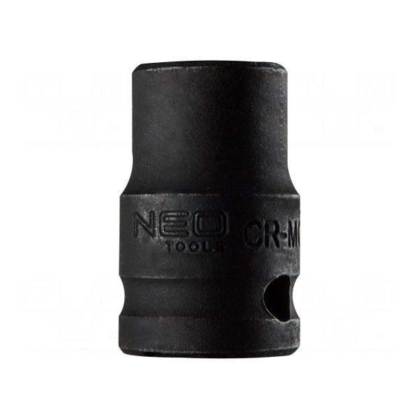 Nasadka udarowa o rozmiarze gniazda 13mm została wykonana w wersji krótkiej, co pozwala na pracę w miejscach o ograniczonej przestrzeni. Narzędzie jest przystosowane do współpracy z kluczami posiadającymi uchwyt 1/2".