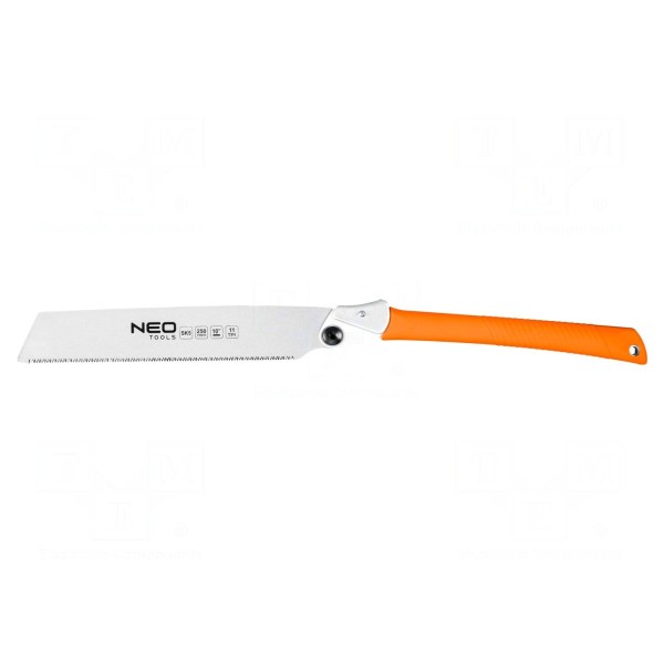 Piła ręczna typu japońskiego o składanej konstrukcji przeznaczona jest do cięcia drewna. Narzędzie wyposażone jest w brzeszczot o długości części roboczej wynoszącej 250mm oraz szeroki profil.