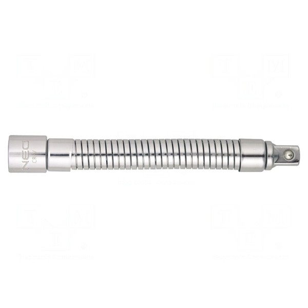 Przedłużka typu elastycznego o długości 190 mm przeznaczona do prac z narzędziami wyposażonymi w gniazdo uchwytu 1/2". Konstrukcja elementu umożliwia dostęp do śrub i nakrętek znajdujących się w miejscach o utrudnionym dostępie.