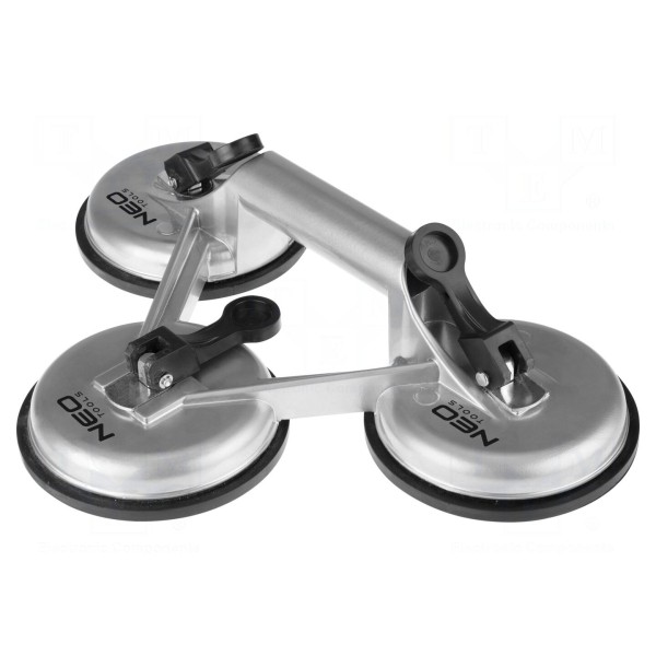 Przyssawka potrójna przeznaczona do transportu oraz montażu elementów ze szkła. Konstrukcja narzędzia opiera się na trzech głowicach o średnicy 120 mm każda, co pozwala na stabilne utrzymanie powierzchni roboczych.