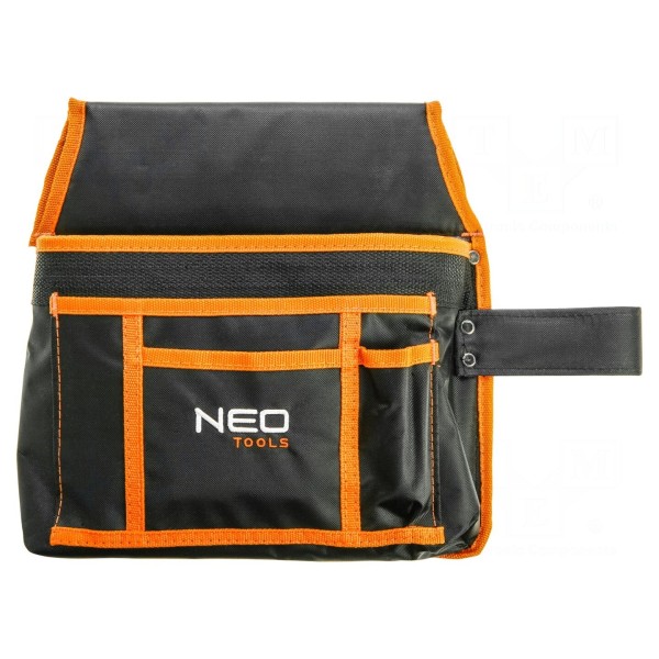 Saszetka narzędziowa marki NEO TOOLS wykonana jest z poliestru 1680D, co zapewnia odpowiednią wytrzymałość materiału przy codziennym użytkowaniu. Produkt utrzymany jest w kolorystyce czarno-pomarańczowej.