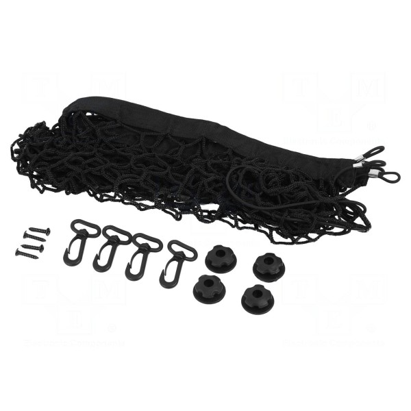 Siatka ochronna o wymiarach 70mm na 90mm przeznaczona jest do wykorzystania wewnątrz bagażnika. Konstrukcja elementu pozwala na zabezpieczenie przewożonego ładunku.