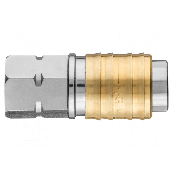 Szybkozłącze wykonane z mosiądzu przeznaczone jest do stosowania w układach pneumatycznych z kompresorami. Element posiada gwint wewnętrzny o średnicy 3/8".