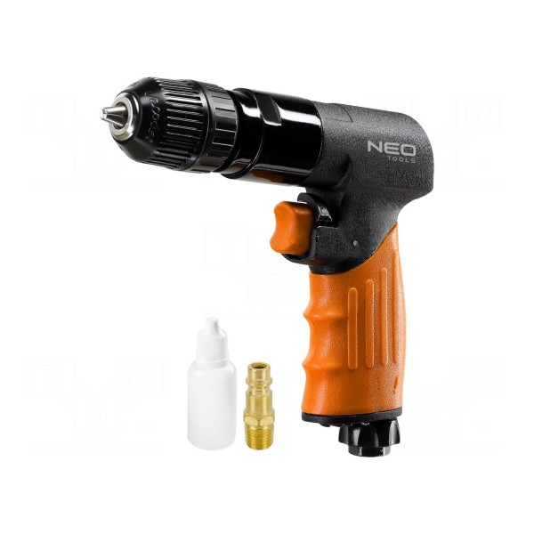 Wiertarka pneumatyczna marki NEO TOOLS to narzędzie zasilane sprężonym powietrzem, przeznaczone do wykonywania otworów w różnych materiałach. Urządzenie osiąga maksymalną prędkość obrotową wynoszącą 1800 obr./min.