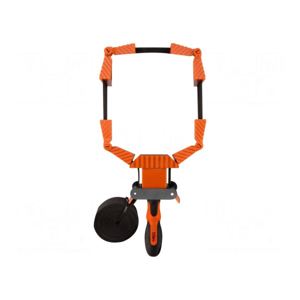 Zacisk taśmowy przeznaczony jest do unieruchamiania elementów podczas prac montażowych. Narzędzie wyposażone jest w taśmę o długości 4 m oraz szerokości 26 mm.