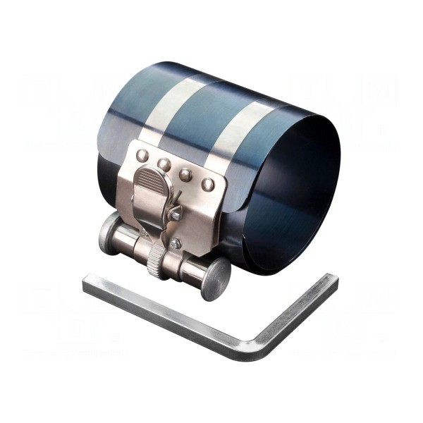 Konstrukcja urządzenia została wykonana ze stali nierdzewnej, co zapewnia trwałość narzędzia w warunkach warsztatowych. Parametry techniczne pozwalają na wykorzystanie zaciskacza w obsłudze układów tłokowych silników spalinowych.