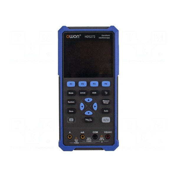 Owon HDS272 to urządzenie łączące funkcje dwukanałowego oscyloskopu o paśmie 70MHz oraz multimetru cyfrowego. Oscyloskop oferuje próbkowanie na poziomie 250Msps, rozdzielczość pionową 8bit oraz długość rekordu pamięci 8kpts. Impedancja wejściowa wynosi 1MΩ/16pF, a czas narastania sygnału osiąga wartość ≤5ns. Użytkownik ma możliwość wyboru sprzężenia wejścia AC, DC lub GND oraz trybów wyzwalania: automatycznego, normalnego lub pojedynczego.