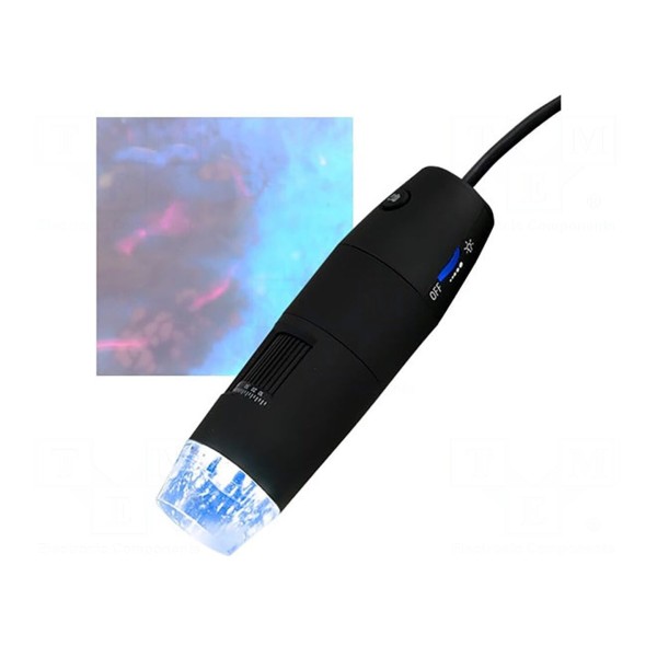 Urządzenie posiada przewód o długości 2 m oraz kompaktowe wymiary głowicy wynoszące Ø33x110 mm. W zestawie: instrukcja obsługi, linijka kalibracyjna, oprogramowanie, podstawka, statyw.