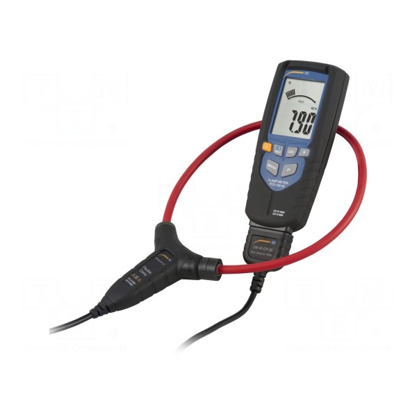 Cyfrowy amperomierz cęgowy PCE-CM 40 przeznaczony jest do pomiaru prądu przemiennego w zakresie od 0 do 3kA. Urządzenie wykorzystuje cewkę Rogowskiego, co pozwala na objęcie przewodu o maksymalnej średnicy 170mm. Miernik charakteryzuje się dokładnością pomiaru prądu AC na poziomie ±3% oraz obsługuje funkcję pomiaru rzeczywistej wartości skutecznej True RMS.