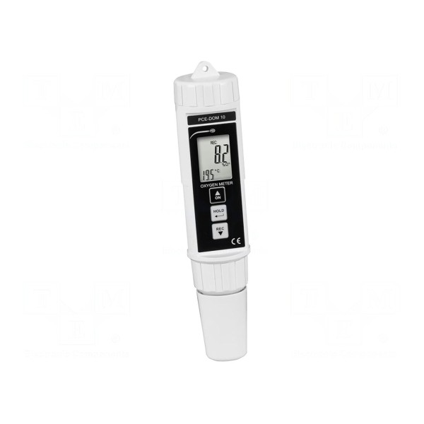 Analizator PCE-DOM 10 służy do pomiaru stężenia tlenu w zakresie 0–20mg/l oraz temperatury w zakresie 0–50°C. Urządzenie posiada rozdzielczość pomiaru temperatury na poziomie 0,1°C przy dokładności ±0,8°C. Wyniki prezentowane są na wyświetlaczu LCD o przekątnej 1,6 cala.
