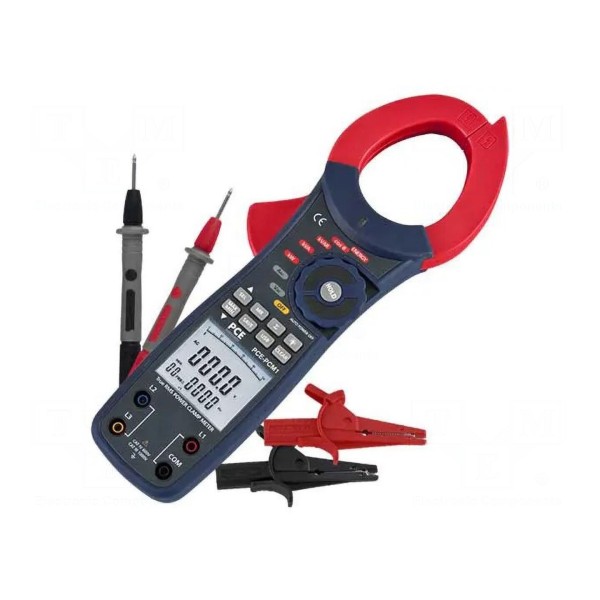 Miernik mocy PCE-PCM 1 to cęgowy przyrząd przeznaczony do pomiarów parametrów sieci elektrycznej, w tym napięcia AC w zakresach 100V, 400V i 750V oraz prądu AC do 1kA. Urządzenie umożliwia pomiar mocy czynnej, biernej w zakresie 4–750kVAR, pozornej od 4 do 750kVA, a także częstotliwości, współczynnika mocy w zakresie 0,3–1 oraz kąta przesunięcia fazowego w zakresie 0–90°. Maksymalna średnica mierzonego przewodu wynosi 45 mm, a szerokość pasma dla pomiaru napięcia AC mieści się w przedziale 50–200 Hz.